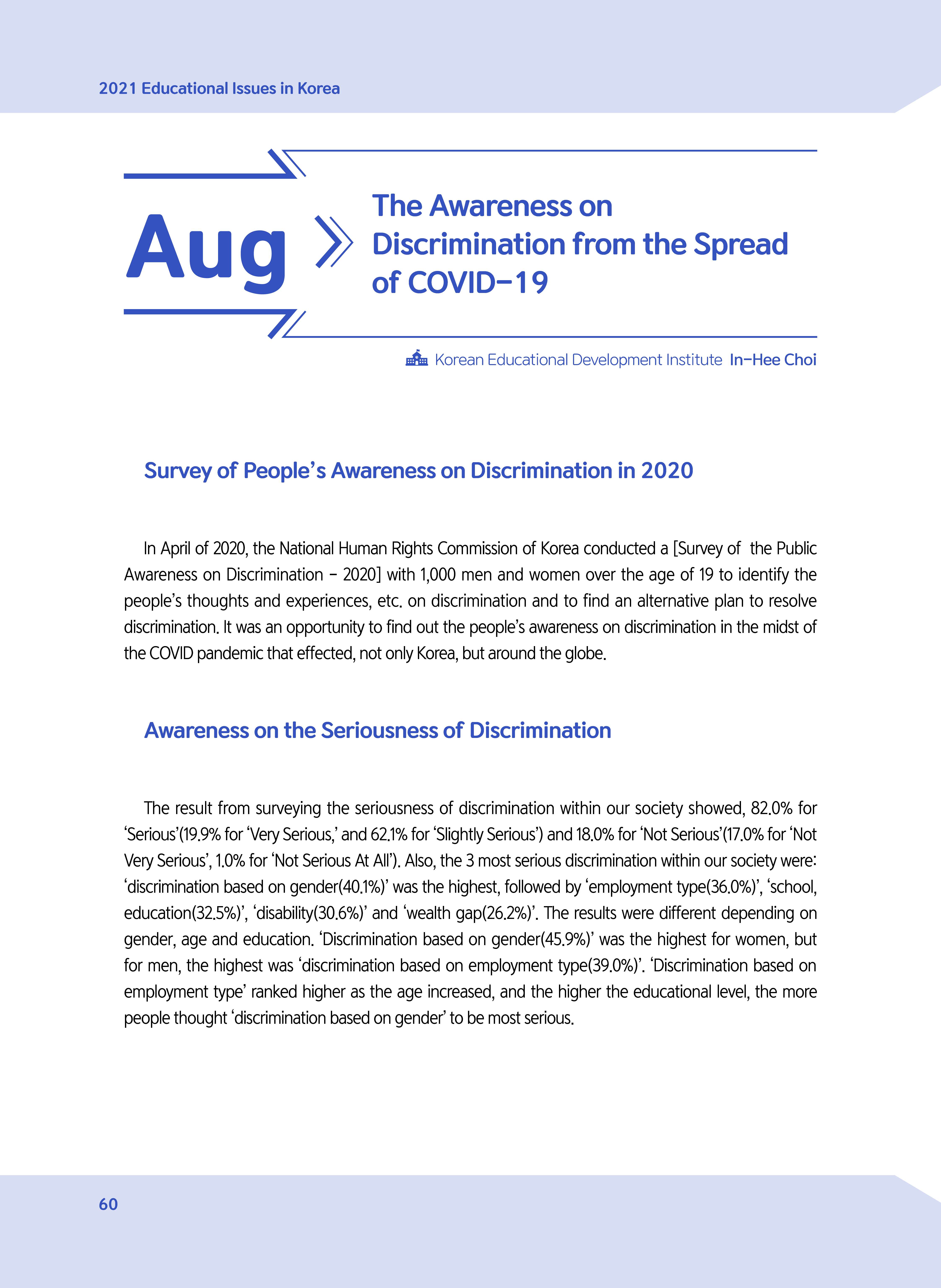 | Title | [August 2021] The Awareness on Discrimination from the Spread of COVID-19 | ||